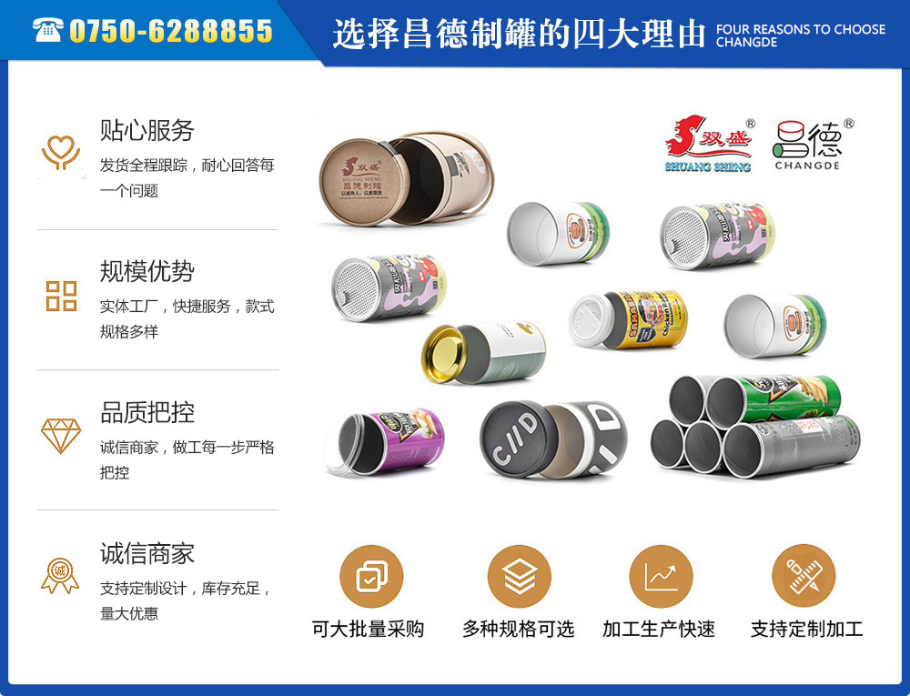 江門市昌德五金制罐有限公司位于江門與珠海臨近的古井鎮(zhèn),是專業(yè)生產(chǎn)紙罐,食品紙罐系列的包裝研制、開發(fā)、生產(chǎn)的廠家,從建廠至今,公司本著“重合同、守信用”的原則,以“質(zhì)量求生存,客戶至上”為經(jīng)營宗旨,贏得了很好的信譽(yù),公司擁有國內(nèi)一流的技術(shù)設(shè)備和多年的生產(chǎn)經(jīng)驗。年產(chǎn)休閑食品紙筒500萬左右,紙筒2000萬支左右,易拉罐,食品罐等1000萬左右,產(chǎn)品銷往各地。我廠是以高科技為先導(dǎo),以技術(shù)創(chuàng)新整合為手段,成為迅速崛起的專業(yè)性包裝企業(yè),憑借艱苦的創(chuàng)業(yè)精神和集體智慧,采用規(guī)范的現(xiàn)代企業(yè)運(yùn)行機(jī)制,形成具有鮮明特色的企業(yè)文化模式和管理...